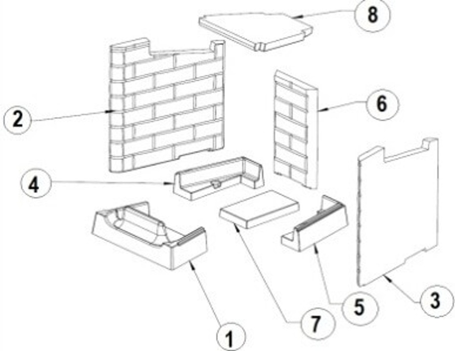 - Es gibt verschiedene Ausmauerungen für dieses Modell. Bitte orientieren Sie sich an den Maßen der Holzbrandplatte, der Sichtscheibe, der Farbe der Steine sowie dem Muster.