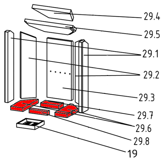 - Bodenstein links (93 x 140/223 x 30 mm), Bodenstein rechts (93 x 140/223 x 30 mm),