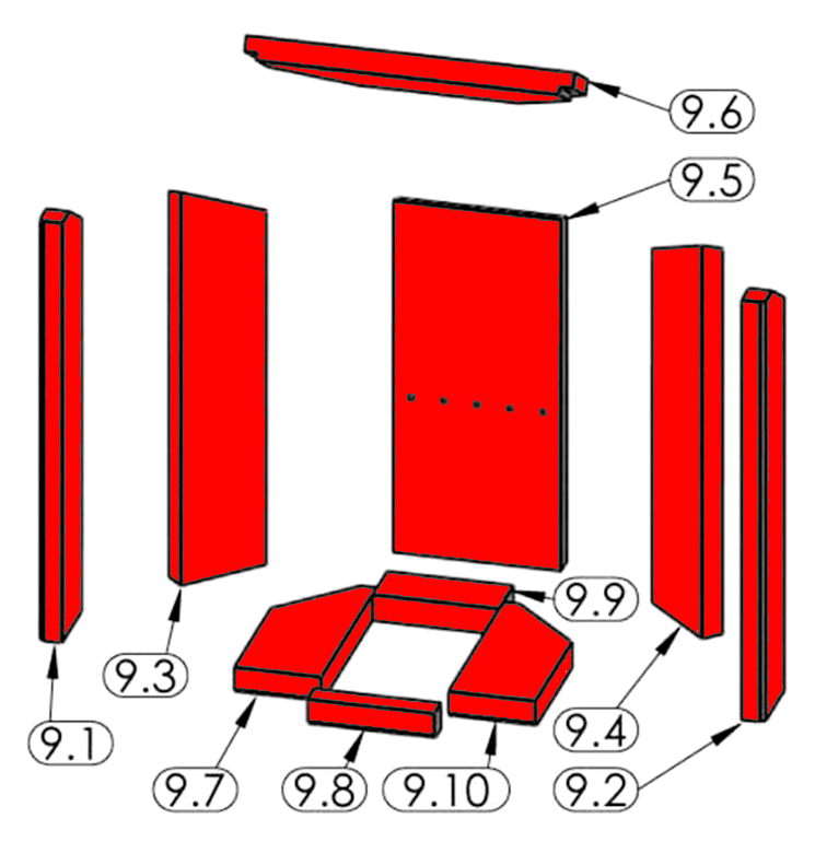 - Positionen 9.1, 9.2, 9.3, 9.4, 9.5, 9.6, 9.7, 9.8, 9.9, 9.10 in der Explosionszeichnung