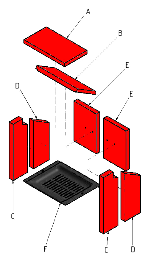Feuerraumauskleidung / Brennraumauskleidung / Brennraumsteine / Holzofensteine / Ofensteine / Kaminofensteine / Brennofensteine / Feuerraumsteine / Ausmauerung